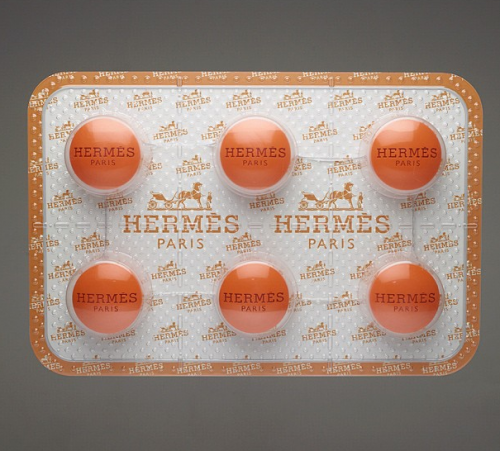 Fort de ce constat, le designer américain Jonathan Paul, alias Desire Obtain Cherish (DOC), a créé une série de pilules de luxe avec les logos gravés dessus pour des marques telles que Hermès, Chanel ou Saint Laurent.